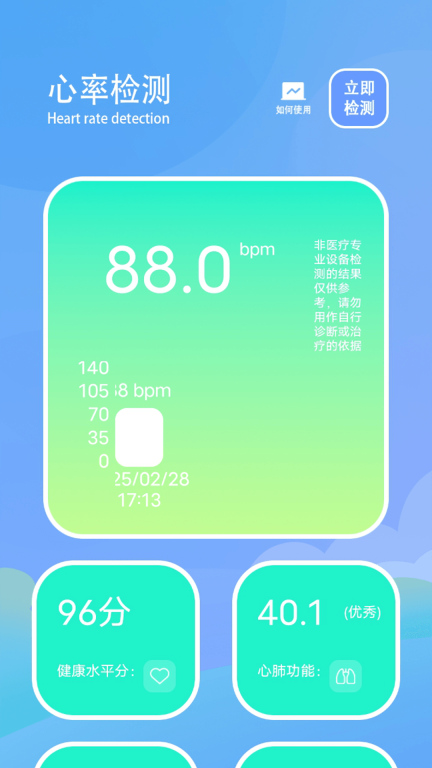 1、巧妙借助手机的摄像头与传感器技术,通过捕捉手指尖血液循环过程中的细微变动,精准测算出心率数据;