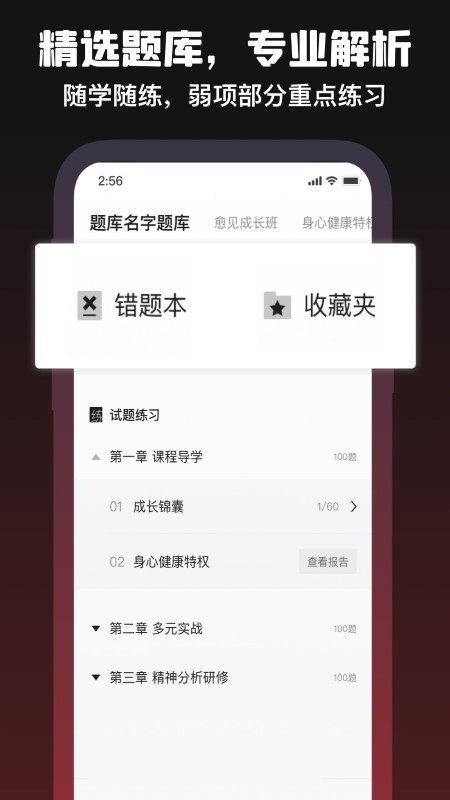 3、高效学习:愈见心理是一款专业的心理学习类手机应用,为用户提供了丰富的专业知识资源,配备在线题库支持用户刷题练习,同时还有名师在线进行课程讲授。