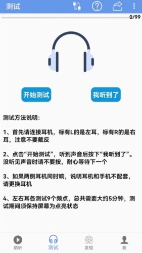 3、听力测试覆盖全面:智听助听器可提供左右耳共16个频点的全覆盖听力测试,用户仅需10分钟就能自助完成。