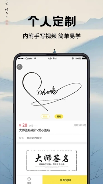 每个定制服务都会明确标注出图时间,完成后系统将自动推送签名图片;用户也能通过视频查看签名的完整书写流程。此外,软件会自动保存定制记录,方便随时查阅历史设计及消费明细。感兴趣的话,不妨下载体验这款艺术签名设计大师,打造属于你的独特签名吧!