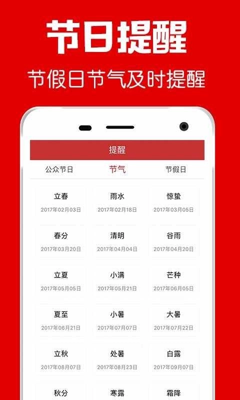 具备节日提醒功能,无论是节气还是节假日都会及时通知,而且能实时同步国家最新的节假日安排。