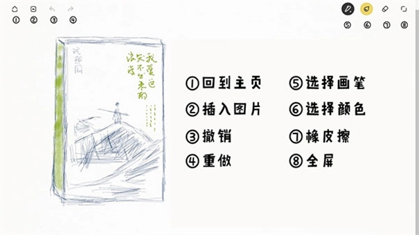 画笔方面,它有六种选择:圆珠笔、荧光笔、铅笔、毛笔、水彩笔和蜡笔。我们可以选择三种粗细程度,这也方便了绘制更精细的画面。