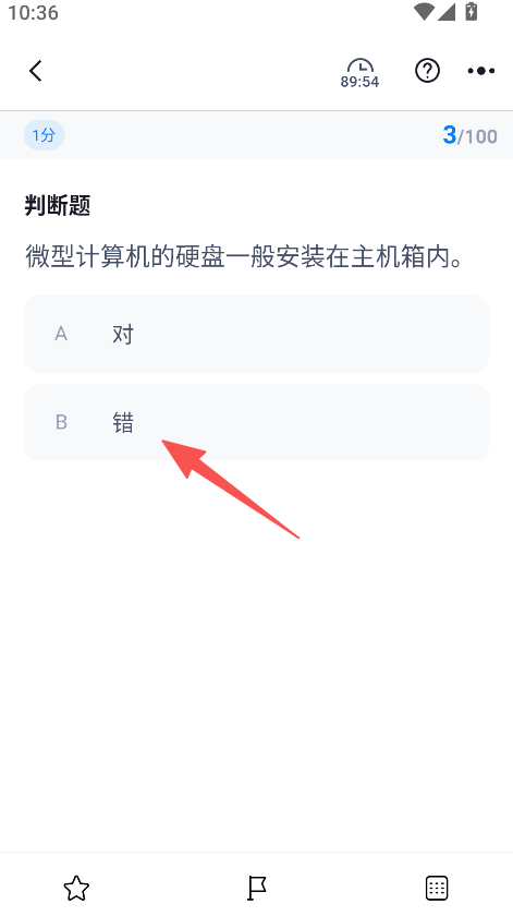 3、进入考试页面后,对判断题等题型进行答案选择,完成相应答题操作。