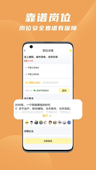 2、安全靠谱:寻鹿招聘给求职者提供安全性高的岗位,审核严谨,人工24小时企业资质审核、岗位信息审核、人工反查岗位,岗位安全可靠,求职者可安心找适合自己的岗位。