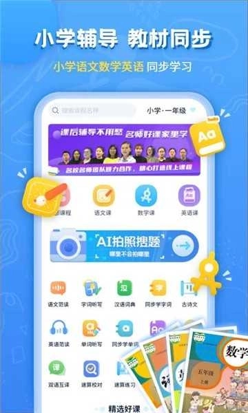 一年365天持续更新小学语文、数学、英语三科的学习内容。平台配备了拍照搜题、英语口语测评与练习、语文及英语课文听力、同步识字、字词与单词听写、同步单词学习、速算口算训练、竖式计算练习、速算结果校对、单位换算工具、各科同步课后习题、作文资源库、古诗资源库、汉英双语辞典、双语互译功能等20余款智能教辅专项工具,全面解决小学课内学习中的各类问题。