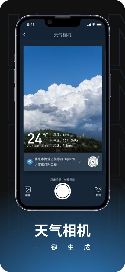 瞰天气是一款实用的气象仪软件,用户能借助它查看各地天气信息,无论何时何地都能使用,十分便捷。它还会展示未来一段时间的天气走向,简洁的界面让你能直观了解天气情况,满足我们的日常需求。此外,这款软件还带有有趣的天气相机功能,一键就能生成对应天气的照片,看起来十分赏心悦目。