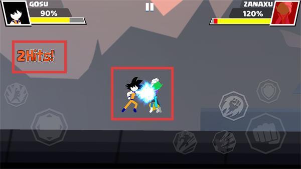 2、操作【GOSU】与【ZANAXU】对战,触发【2-Hits!】连击效果,通过释放技能对敌方目标造成伤害。
