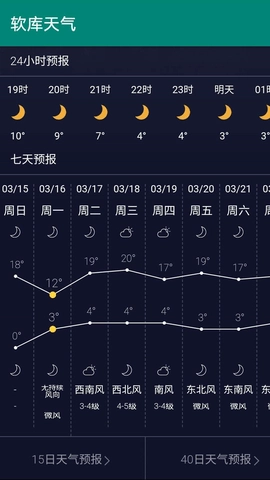 2、用户可以在软件主页面上一目了然地了解未来的温度变化情况,并以曲线的形式显示变化趋势;