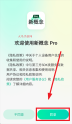 安装并启动新概念PRO版,在“欢迎使用新概念 Pro”的界面上点击“同意”按钮。