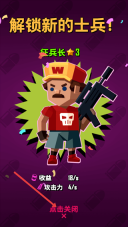 4、当解锁新士兵的弹窗弹出后,点击【点击关闭】按钮,即可关闭该提示并继续进行后续的游戏操作。