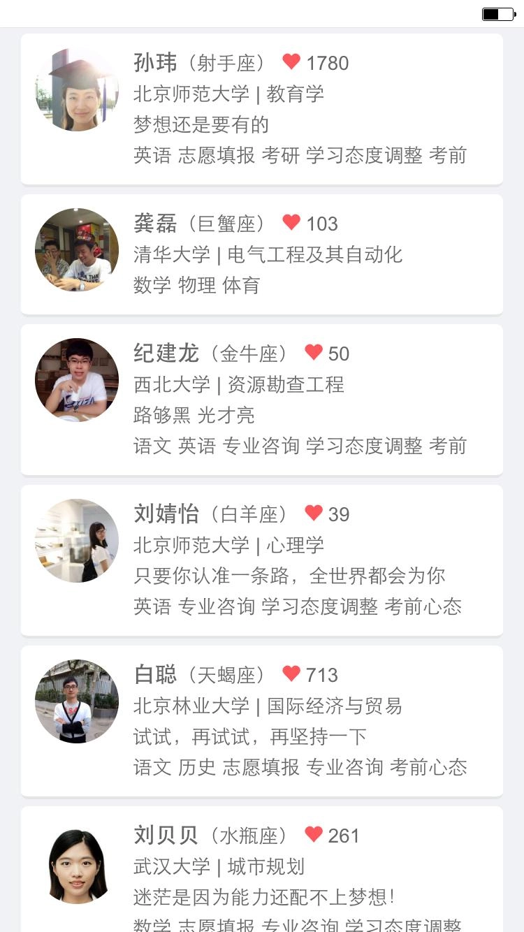 2000多名大学学长学姐帮你解答学习或志愿问题。
