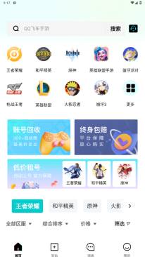 1. 平台首页:呈现各类热门游戏的最新账号详情,并推荐高品质账号。