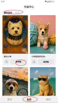 4、在发现页面,你能浏览到最新上线的模板,挑选出自己心仪的作品后,只需一键操作就能快速制作出同款内容。