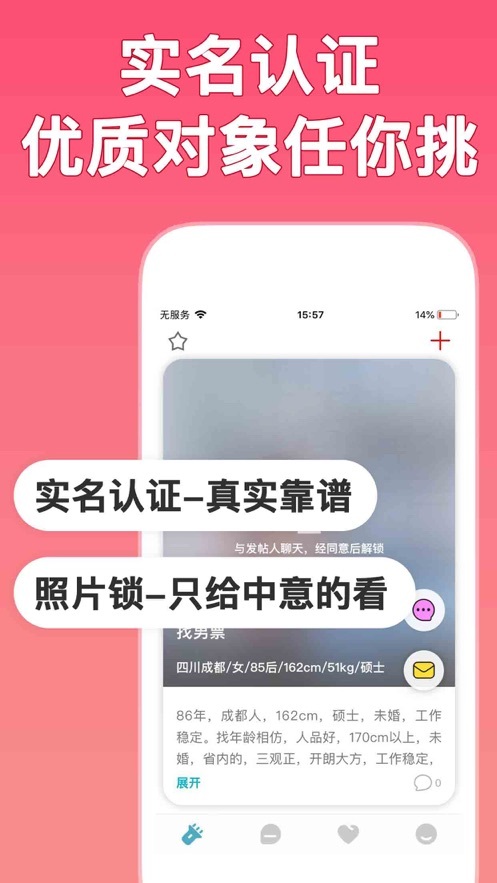3.与此同时,平台对每位用户都进行了严格的认证审核,所以您完全可以安心地在这里结识朋友。