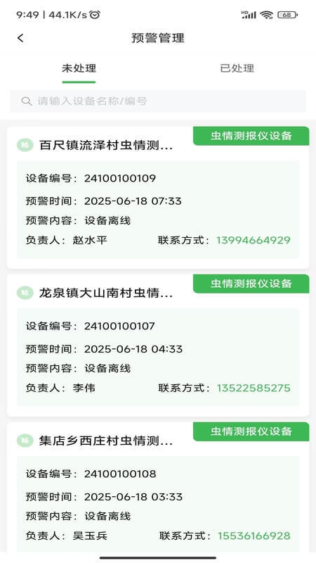 3、可覆盖多种作物与各类设备的管理,其中作物涵盖玉米、高粱、小麦等,设备则包含虫情测报仪、灌溉设备等。