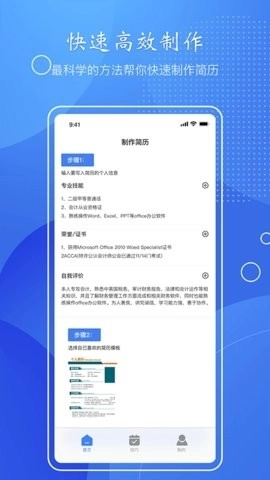 5、快速高效的制作,最科学的方法可以帮助您快速创建简历
