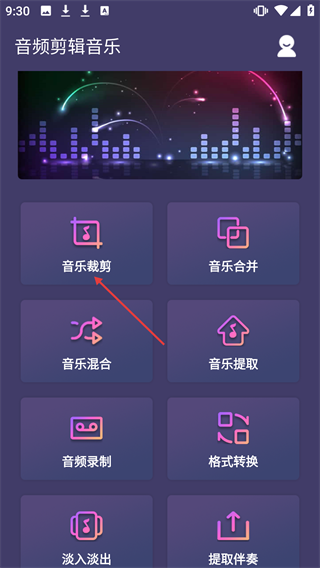 1、打开应用主界面后,点击【音乐裁剪】功能模块,即可启动音频裁剪的操作流程。