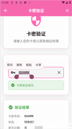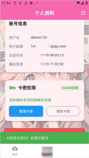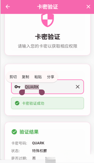 1、用户完成注册并登录后,将免费获取夸克网盘的卡密兑换码。