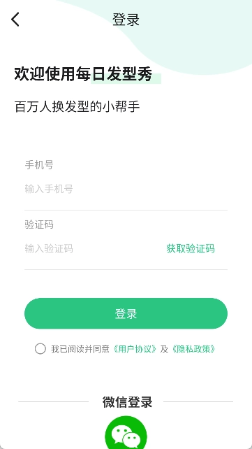 1、并安装每日发型,使用手机号完成登录。