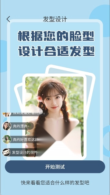 试发型:拍照或选择照片,一张正脸照即可尝试多款发型,女士发型、男士发型、儿童发型都有。可从脸型分析、发型设计、头发颜色等多方面为你解决发型问题。