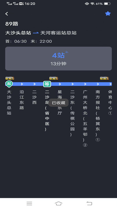 2、选定起始站点和目的地车站后,系统会自动规划出最优的公交换乘方案,其中涵盖换乘站点以及换乘线路信息。