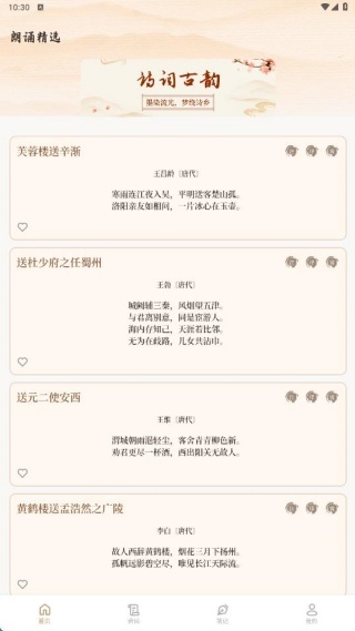 金荔枝诗词是一款内容超全的诗词学习软件,支持按朝代浏览各类知名诗词作品,每首诗词都配有相应的解析内容,方便随时阅读学习,助力提升知识储备,深入了解诗词的创作背景;同时,你还可以在线添加个人学习笔记,记录下阅读诗词时最真实的感受与心得。