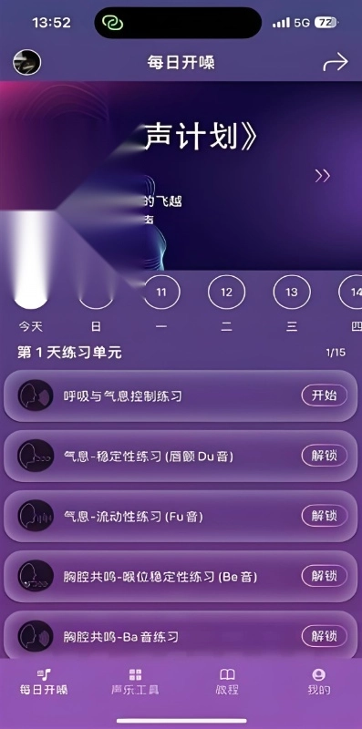 2、个性化练习计划:根据用户的声音基础和目标,定制每日练习计划,循序渐进地提升唱歌能力,让练习更加高效。
