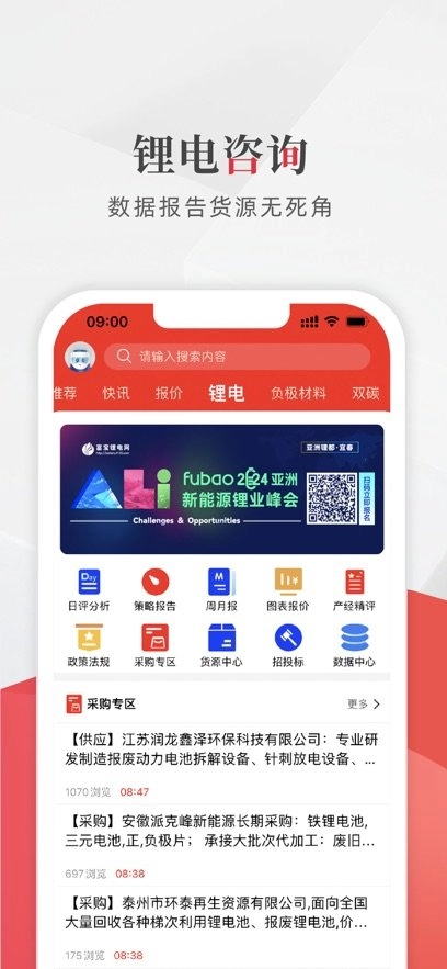 富宝新能源是由富宝资讯推出的一款软件,它专注于新能源锂电、氢能、双碳领域,能够为用户提供产业商品报价、产业供需情况、产业资讯动态、产业研究报告、产业咨询服务以及货源信息等一体化的产业资讯服务。