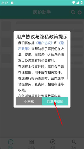 在使用协议与隐私政策弹窗里点击“同意并继续”按钮,即可进入登录页面。