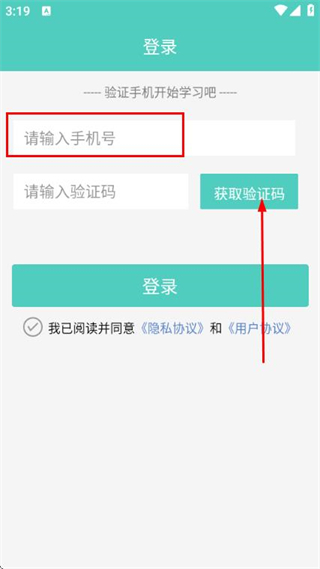 2、进入手机验证登录页面后,填写对应的手机号码,勾选相关协议条款,接着点击“获取验证码”按钮。