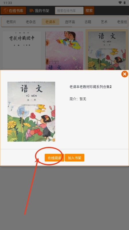3、比如需要课本资料,点击老课本选项,查看栏目里的书籍,选择要的书籍