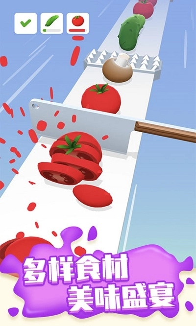 《狂乱切水果》是一款主打料理切片模拟的休闲游戏。玩家只需按住屏幕,就能操控刀具肆意切割水果蔬菜,操作简便易上手,玩起来解压又有趣!游戏里的可切食材十分丰富,除了常见的水果蔬菜,还有色彩缤纷的甜筒、蛋糕、巧克力等甜品;刀具和炉栅等道具也有多种精品款式可供挑选!游戏采用清新简约的画风,搭配层出不穷、设计精美的挑战关卡,玩家可以自由发挥创意;各类充满风险的冒险任务更是让人热血沸腾、乐趣无穷。别再犹豫啦,快来开启你的切割之旅吧!