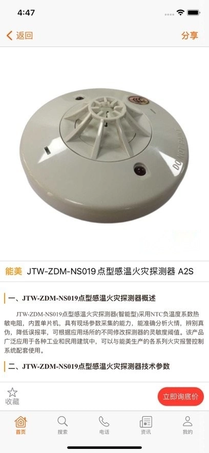 这是一款提供火灾安全相关设备的消防服务软件,用户可在线获取相关信息。平台内所有产品均配备详尽的说明书与检测报告,用户只需选择查看资讯板块,就能按照分类挑选相应内容进行详细阅读。