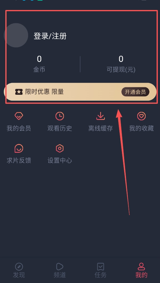 1、软件的基础是账号体系,你需要通过“我的”页面完成登录,从而激活金币、会员、收藏和观看历史等个人专属功能。