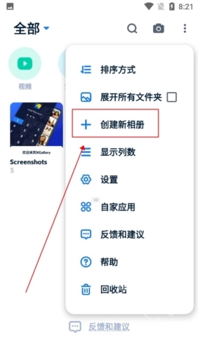 2、选择【创建新相册】;