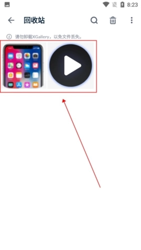 2、在回收站找到需还原的照片;