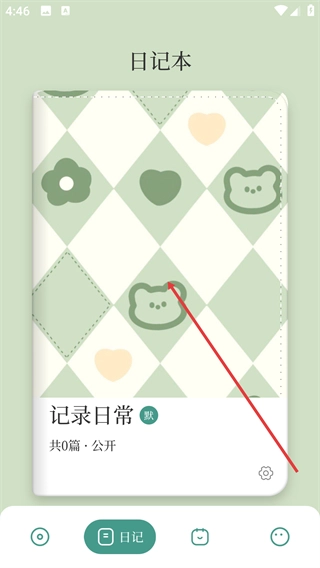 2、进入【日记本】页面,点击显示“记录日常-共0篇·公开”的日记本卡片,进入日记记录的操作界面。