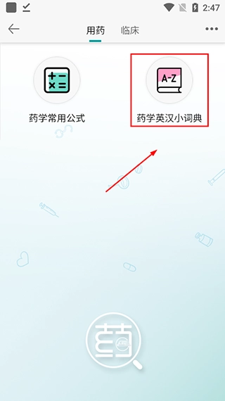 (1)在【辅助工具】内,点击【药学英汉小词典】;