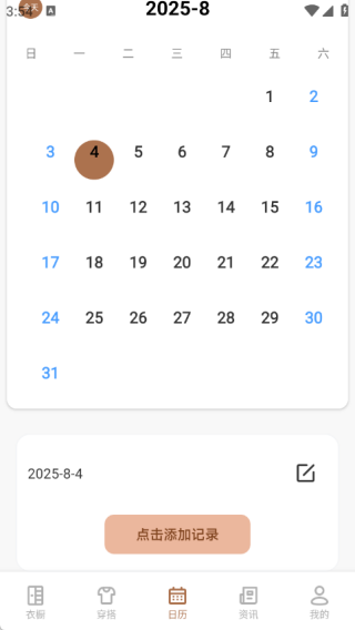 3、档案记录功能可智能生成穿搭日历,便于用户进行回顾与规划。