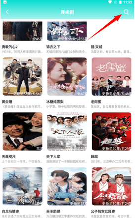 首先我们进入到首页,在页面最上方能看到一个放大镜样式的图标,点击它就可以利用搜索功能查找节目了。