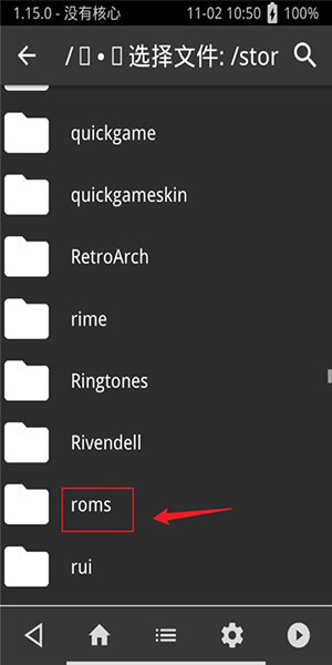 3、这里游戏的ROM文件我通常存放在ROM文件夹里,找到它就行。