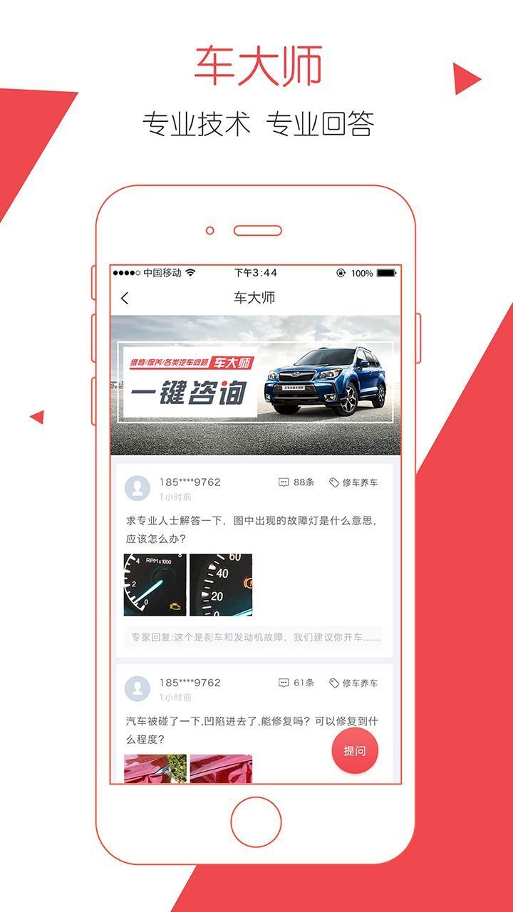 【车大师】专业技师与专属管家随时为您解答车辆相关的各类疑问。新车选购有困惑?保险方案拿不定?车辆遇到小故障?今后只需提出问题,就能获取专业可靠的解答,彻底告别水军那些不靠谱的奇葩回复。