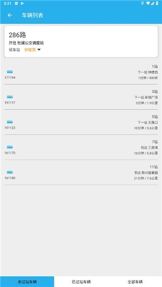 4、点击车辆列表可以查看该公交车的到站时间