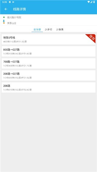 3、可以为用户提供多种换乘方案,用户能够从中挑选最合理的方案前往自己想去的目的地。