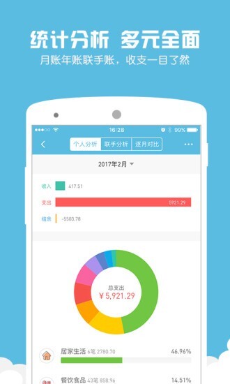 4. 借助图表分析功能了解开销的分布状况,以便及时对预算和消费计划进行调整。