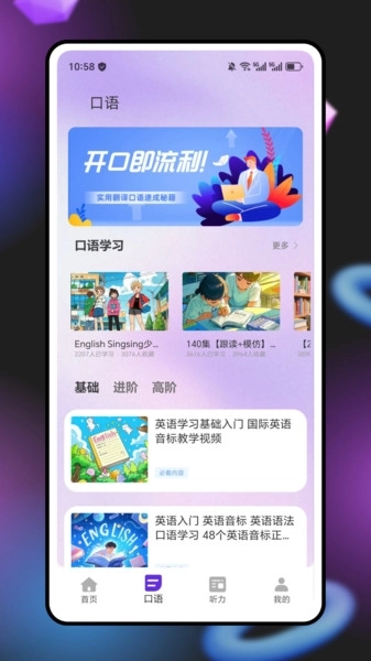 2、专业配音:提供专业语言学习配音员的标准发音,确保用户学到地道的英语。