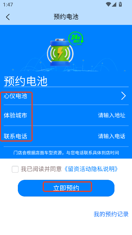 2,填写城市与电话即可在线提交预约申请