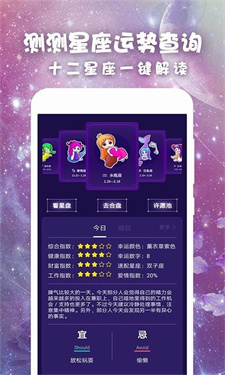 为你建立出生时的专属档案,自动匹配对应的星座,无需手动进行农历与阳历的转换。此外,还有开运宝典、星座爱情解析、性格深度剖析等丰富内容。