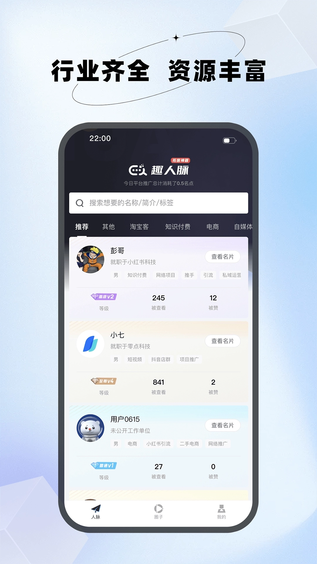 1、智能推荐:趣人脉依托先进算法,结合用户的资料信息与行为数据,精准匹配并推送用户可能感兴趣的人脉资源,助力提升社交连接的效率。