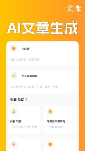 文案写作专家:你手机中的文章生成神器,只需要在首页中输入文章的关键词信息,系统就会在后台中自动的进行检索,结合当前的语境进行编辑文章,还支持对文章进行快速的修改,发现文章中的一些语法错误的问题,系统快速的对有问题的地方进行修改。
